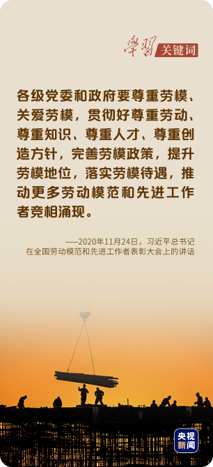 4月27日,“五一”国际劳动节到来之际,习近平总书记代表党中央,向广大技能人才和劳动模范致以诚挚的问候,向广大劳动群众致以节日的祝贺。