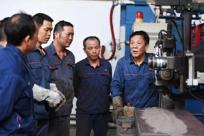 △艾爱国(右一)多次参与我国重大项目焊接技术攻关,攻克数百个焊接技术难关。
