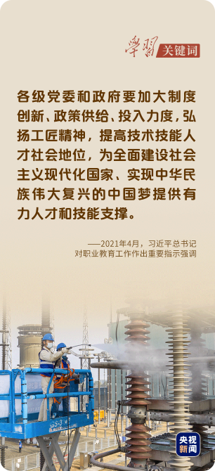2021年4月,总书记对职业教育工作作出重要指示强调,要加快构建现代职业教育体系,培养更多高素质技术技能人才、能工巧匠、大国工匠。