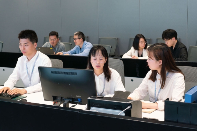 图为之江实验室智能超算研究中心团队在科研现场。(之江实验室供图)