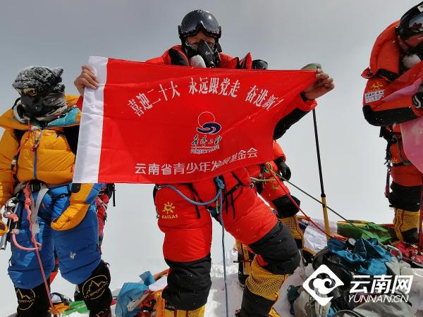 4月30日,时隔四年,云南希望工程志愿者郭文荣再次成功登顶珠峰。他将云南希望工程旗帜插上地球之巅。