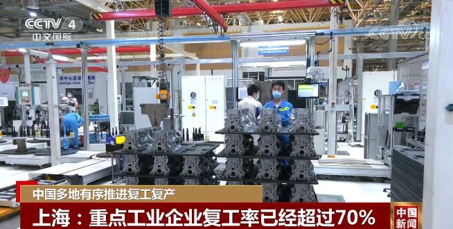 上海市经济信息化委总工程师 张宏韬:截止到5月4日,全市重点监测的1800家工业企业中,复工率已经超过了70%,尤其是在第一批660多家重点工业企业中,复工率已经超过了90%,汽车、集成电路、生物医药等重点产业链持续恢复,提升了产能。
