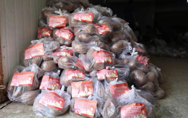 ▲工作人员正在给分装好的土豆贴上爱心土豆的标签。受访者供图