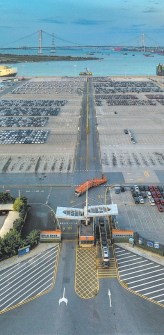 广东省广州港南沙汽车口岸井然有序。该口岸凭借良好的营商环境、区位优势和通关便利条件,累计开辟6条汽车出口航线。 王美燕摄(影像中国)