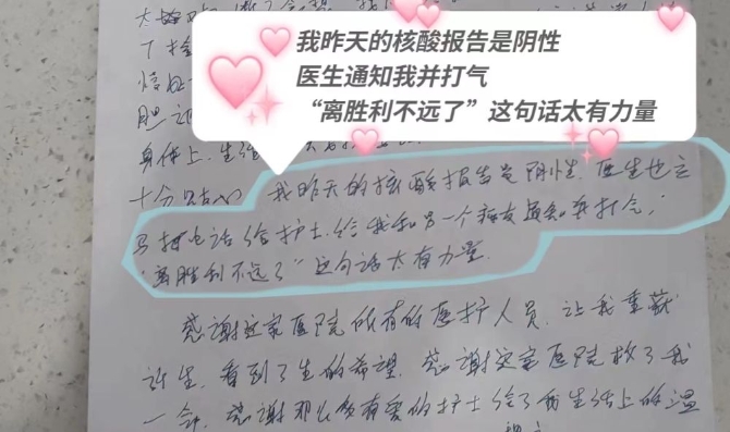 患者给医护人员的感谢信。受访者供图