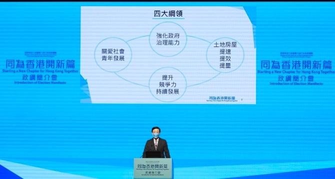 4月29日,李家超公布竞选政纲。新华社记者 吕小炜 摄