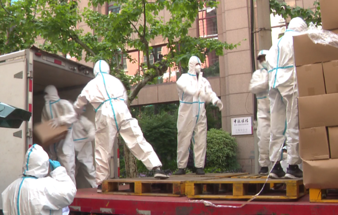 “我们组织了18辆车,将近30个人次来帮它们送到各个社区,为它们能够减少驳运。” 中国邮政集团公司上海市黄浦区邮政分公司副总经理徐鸿祥表示,“这次我们也了解到黄浦区外滩街道总共有将近9000户,我们也准备分3天把这些物资最快时间送到居民手上。”