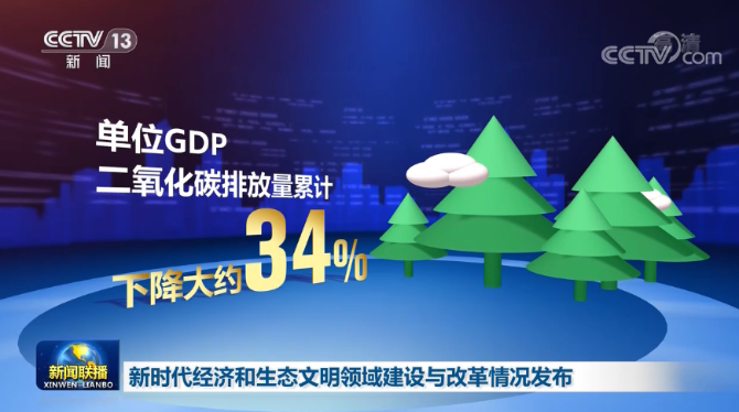 生态环境状况实现历史性转折。雾霾天气、黑臭水体越来越少,蓝天白云、绿水青山越来越多,植树造林占全球人工造林的四分之一左右,单位GDP二氧化碳排放量累计下降大约34%。