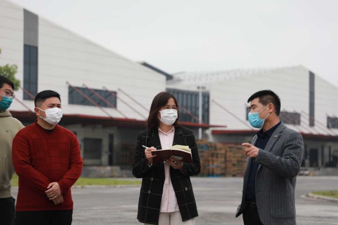 金山区经委生物医药科科长费国英走访枫泾工业园区企业,听取企业负责人复工复产过程中的实际困难和需求。
