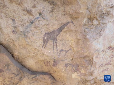 在南部非洲国家博茨瓦纳最东端的图利自然保护区,有20多处土著桑人留下的岩画,距今已有1800多年,成为当地著名的人文景观。这些岩画多为动物,有长颈鹿、大象、羚羊、狒狒、豺狼、食蚁兽等,也有表现桑人生活的画面,如人群跳舞、聚会等场景。岩画大小不一,大的约有30厘米高,小的约有5厘米高。 新华社记者 滕军伟 摄