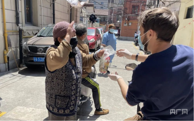 “阿姨,这是送给您的礼品,请拿好。”近日,在上海黄浦区瑞金二路街道复兴坊社区的人群中,一张与众不同的脸显得格外醒目。他操着一口流畅的“京普”,不时把手里的饼干、糖果分给街坊邻里,“这些物资都是我朋友公司提供的,主要分发给社区里的老人、小孩。”