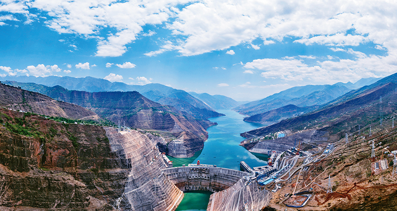 金沙江白鹤滩水电站是实施“西电东送”的国家重大工程,是当今世界在建规模最大、技术难度最高的水电工程。自2021年6月28日首批机组投产发电以来,白鹤滩水电站累计发电量已达256亿千瓦时,相当于减排二氧化碳2000多万吨。图为2022年4月22日拍摄的白鹤滩水电站一景。 新华社发 胡超/摄