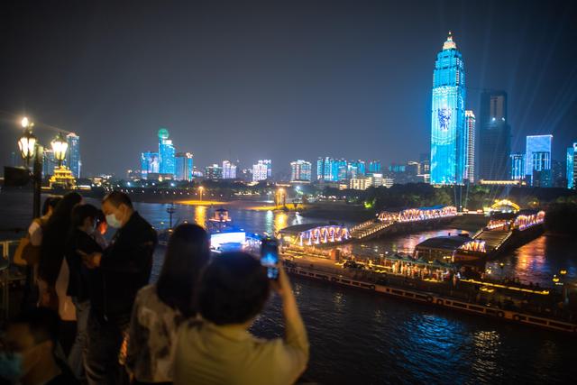 5月18日是国际博物馆日。当晚,湖北武汉上演“博物馆之夜”主题长江灯光展示活动。活动融合现代光影、AR等技术,动态展示各地精美馆藏文物及主题标语,点亮两江四岸标志性建筑,让文物“活”起来。