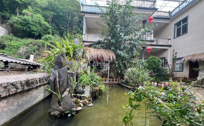 记者采访时,一村民家的庭院建设吸引了记者注意,了解后得知是水头村的村小组长白兴刚家,他带头先对自家院子进行改造,地面上铺满了地砖,院墙外围也被她利用起来,两层小楼房前种上不同品种的花草树木,凉亭、假山、小拱桥……闲暇时候可以去荡秋千,听泉声,和三五好友饮茶聊天,观赏庭院美景。