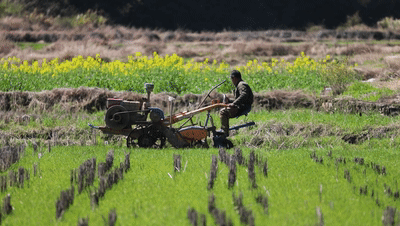五月的清晨,天刚放晴,趁着难得的暖意,齐土金穿着长长的下水裤赶着出门了,领着几名脱贫户在田垄上翻耕,为新一年的春播做准备。