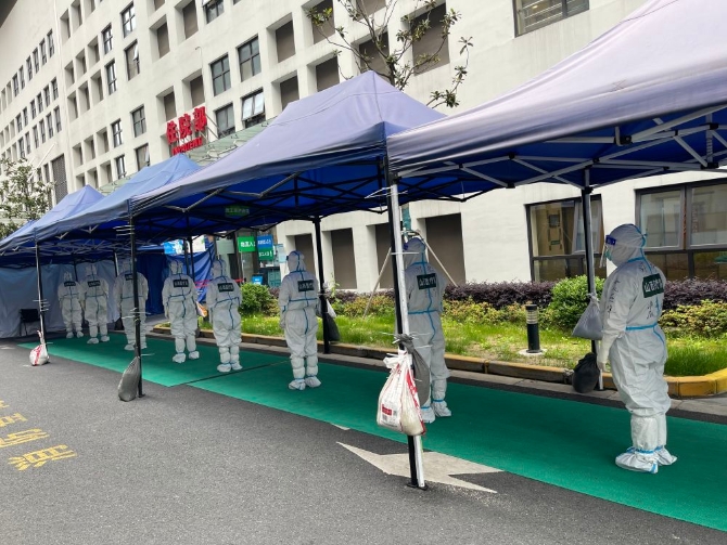 与山西凉爽干燥的气候不同,五月的上海日渐炎热,高温成了山西援沪医护队员们面临的一大考验。参与核酸采样的医护人员需要长时间穿着防护服,一天下来,全身要被汗水打湿好几遍,但没有人松懈倦怠。遇到老人和坐轮椅的残障人士,队员们会主动蹲下身采样;面对哭闹的小朋友,他们始终耐心安抚鼓励,快速完成采样。