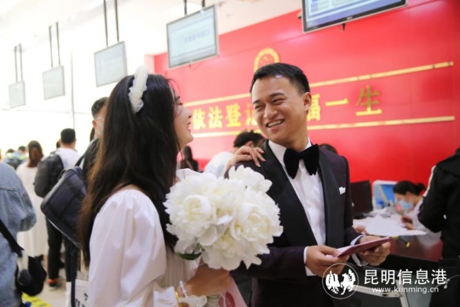 昆明信息港讯 记者杨雁 每年的5月20日都是结婚登记高峰日,为确保5月20日婚姻登记规范有序,西山区政务服务中心通过五项举措,有效防范和处置婚姻登记现场扎堆、聚集、拥挤现象,当天共为219对新人办理了婚姻登记。