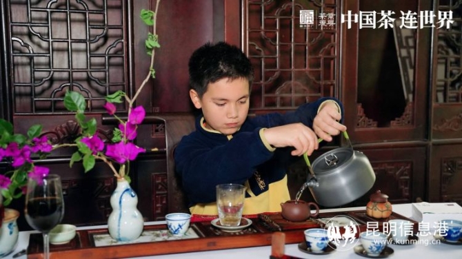 茶会上,一位十岁的少年吸引了茶友的注意,他冲泡手法娴熟,细节处理到位,泡出来的茶口感极佳,这位少年表示,自己已经有8年茶龄,此话一出,引得茶友赞叹不已。