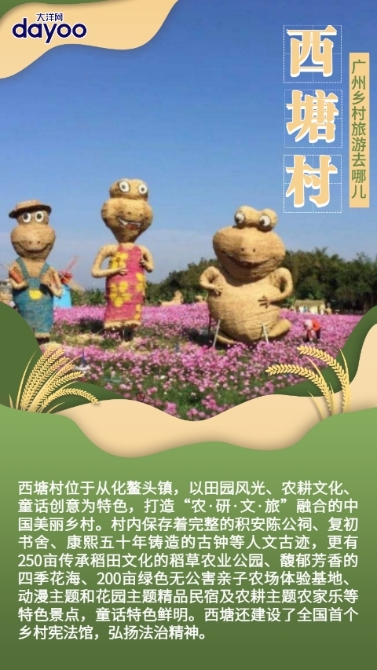 当下为避免疫情风险,仍不提倡跨省跨市旅游。不过,美好不一定只存在于远方,在广州也能体验向往的生活!绿水青山、稻田花海、岭南水乡、山野星空……今天是中国旅游日,趁着明媚夏日,到处尽是生机勃勃与繁茂绚烂,走出喧嚣城市,一起走进这些美丽乡村,与大自然来一场不期而遇的美好邂逅吧!