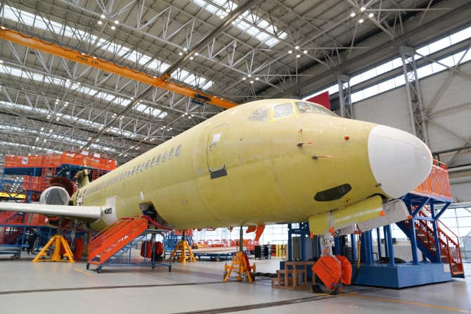 中国商飞上海飞机制造有限公司总装车间内的国产ARJ21飞机。记者 丁汀 摄
