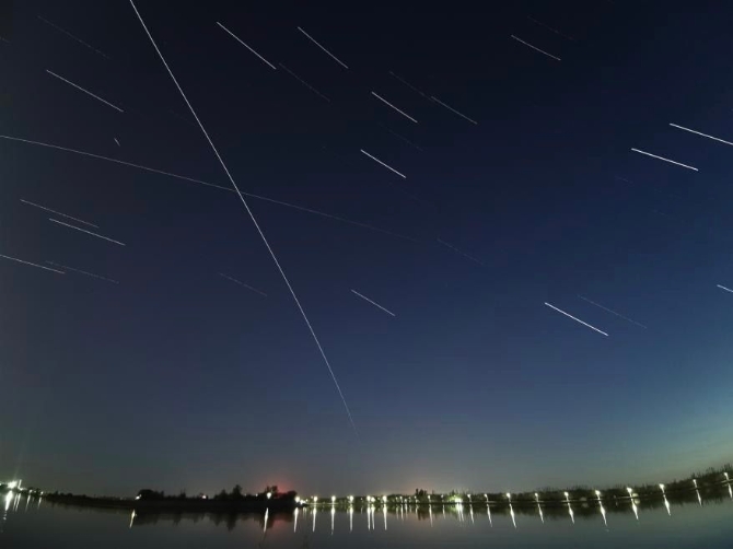 北京西山国家森林公园上空,中国空间站邂逅国际空间站。(网友浩淼之星耿夏 摄)