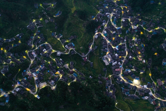 这是广西融水苗族自治县杆洞乡锦洞村夜景(无人机照片,2021年8月30日摄)。新华社记者 黄孝邦 摄