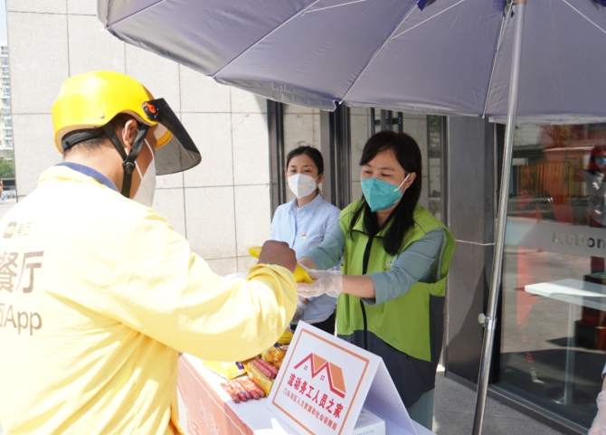 “流动务工人员之家”分别在商超卖场、餐饮商区设置“小哥能量加油站”,在快递、外卖站点设置“小哥能量自助补给站”,组建青年志愿服务队,于午、晚间用餐高峰时段,用最便捷高效的方式为外卖骑手、快递小哥提供矿泉水、面包、N95口罩、免洗消毒液等物资,以及政策咨询服务,发放“人力社保快速响应卡”,确保新业态劳动者权益能够响应及时、调处到位、保障有力。