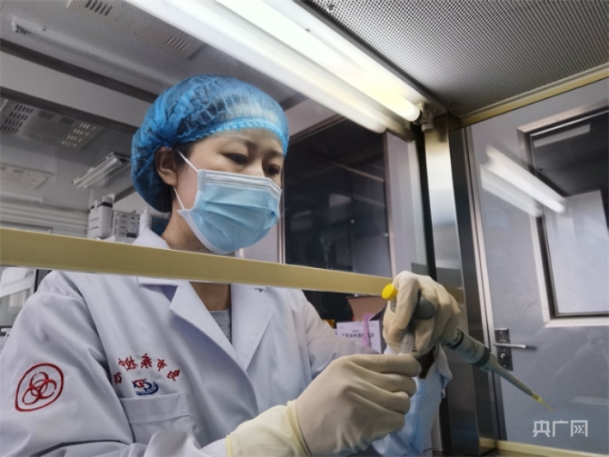 在如同战场一样的实验室里,李慧田要进行三级防护,按照严格的操作流程,检测样本,查找病毒,定性“阴阳”,最忙碌时,她一天要检测600余份样本,每次实验结束,汗水早已经湿透衣衫。