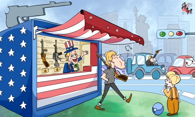 枪支暴力同美国社会不平等、种族主义、贫富差距等诸多问题相互牵扯、盘根错节。受制于美国金钱政治、极化政治的现实,枪支泛滥多年来顽疾难除,民众为之付出沉重的生命代价。生命权是最大的人权。一声声枪响击碎了所谓“人人得享不可剥夺的自由”的幻象,促使人们对美式人权民主自由进行深刻反思。
