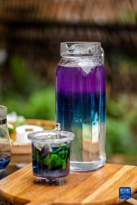 上官法智用甜叶菊等植物制作的饮料。新华社记者 胡超 摄