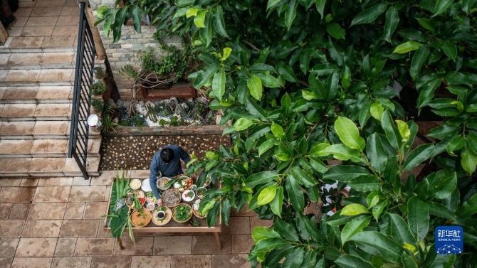 鲜花作衬,美味留香,爱植物的人也热爱生活。上官法智很感谢生物多样性带来的乐趣。