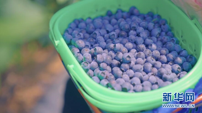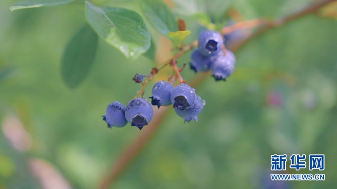 一颗颗蓝莓好似小巧圆润的蓝宝石。 新华网发