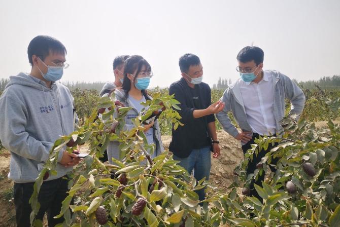 2020年10月,杨晖带队在乡村调研红枣种植产业(右一为杨晖)。受访者供图