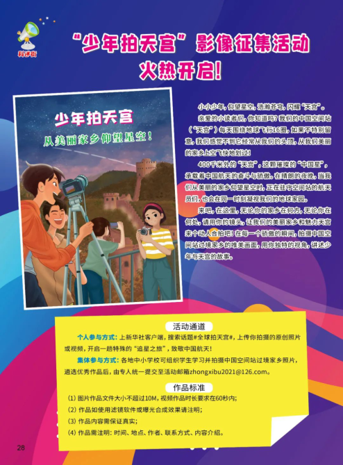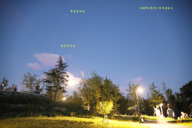 ↑国际空间站、中国空间站相继过境北京(拍摄者:张博涵 10岁 小学四年级)