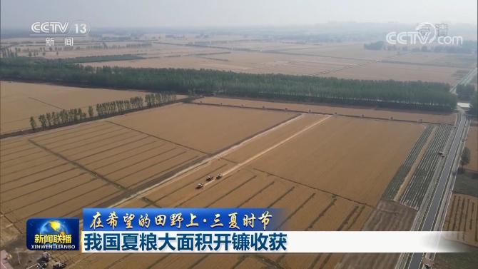 央视网消息(新闻联播):今天(5月29日),全国冬小麦日机收面积连续三天超过500万亩,夏粮主产区河南、安徽进入集中收获期,标志着夏粮大面积收割全面展开。
