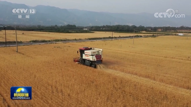 今天的夏粮主产区麦浪滚滚、机声隆隆,呈现出一派丰收景象。