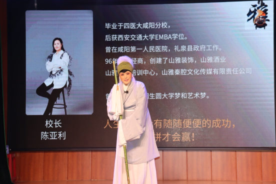 作为本次活动的承办方,西安山雅子月艺术培训中心的负责人陈亚利,不仅是一位成功的女企业家,也是一位资深戏迷,今天她也是和戏迷们一起粉墨登场,倾情演唱了一段《盼子》,圆了她一直不断追求的一个秦腔梦。
