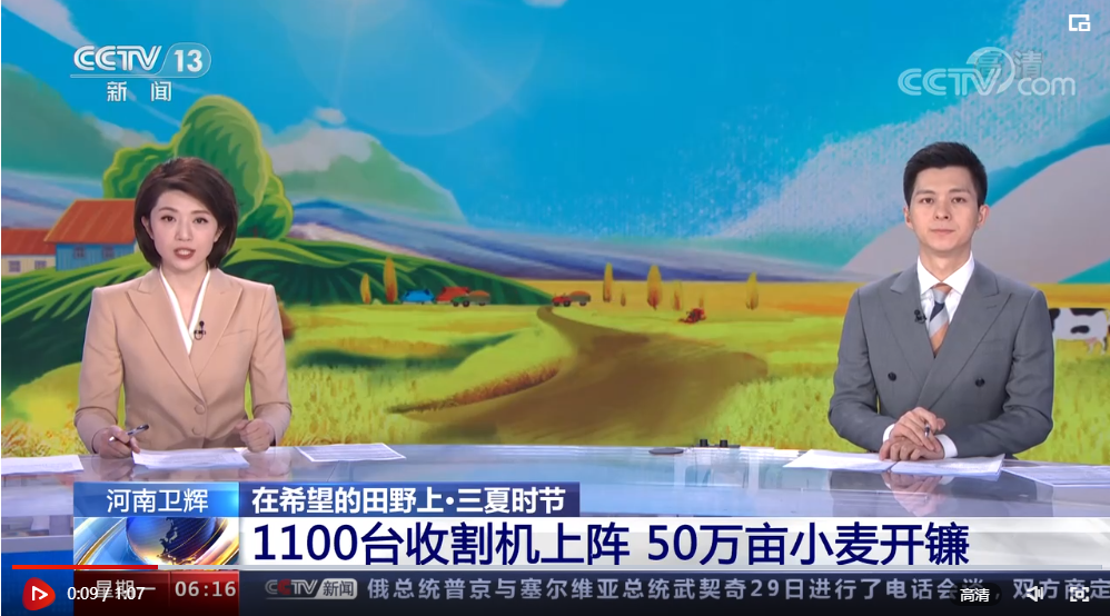 河南卫辉1100台收割机上阵 50万亩小麦开镰 丰收在望