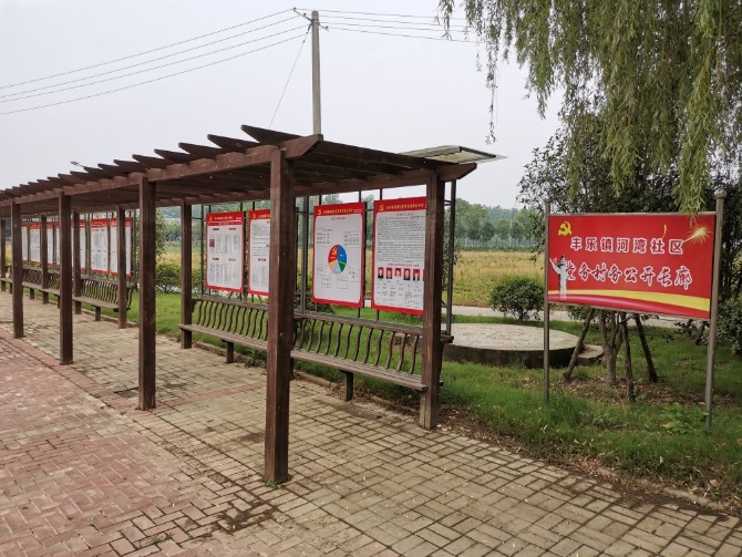 “由于村民的房屋从丰乐河河堤边拆迁了,我们也把公开栏从河边的位置移到了村口道路旁,这样大家回来就能看得到。”河湾社区党总支书记董先鹤说。