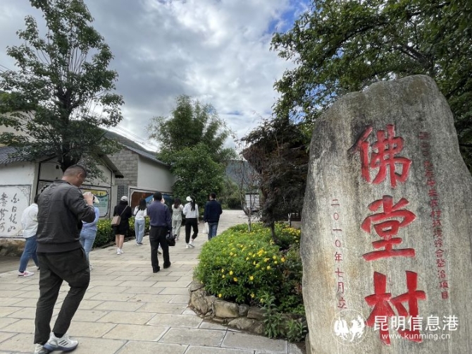 走进佛堂村,踏着青石板村铺设的干道,路旁溪水潺潺、虫鸣花香,统一修建的绿化、路灯生态停车场、旅游公厕、游客服务投诉办公室、景观亭、白族文化陈列室等服务设施规划有序。