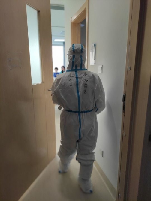 华亭方舱医院关舱后,海南援沪医疗队队员朱乃云转战嘉定区一家定点医院。(受访者供图)