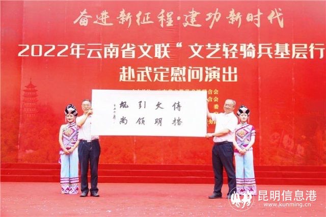 昆明信息港讯 记者甘凌菲 为喜迎党的二十大胜利召开营造良好氛围,把党和政府的关怀和温暖传递给基层干部群众,表达对文艺工作者服务人民群众的真挚情怀,增进人民群众“奋进新征程、建功新时代”的信念信心,近日,云南省文联文艺志愿服务团“文艺轻骑兵基层行”慰问演出活动在楚雄州武定县举办。