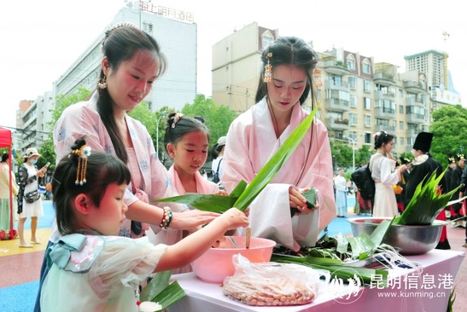 昆明信息港讯 记者尹吉 6月3日下午,“乘风破浪 粽夏有约”盘龙江国潮端午游乐会在盘龙江桃源码头启动。据悉,6月3日至6月5日,昆明滇润公司为乘客提供免费汉服,让游客在赏花赏景的同时,体验沉浸式国潮古风汉服游。