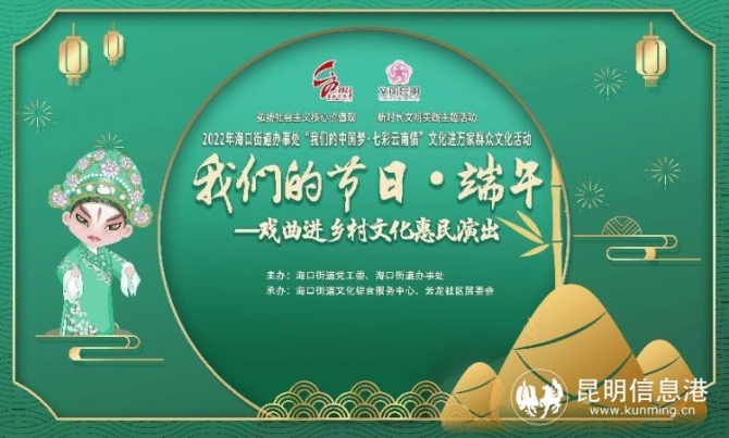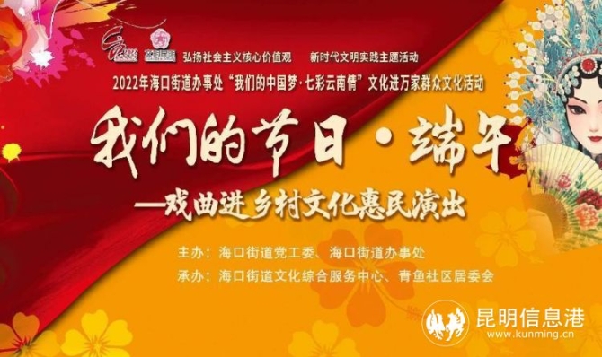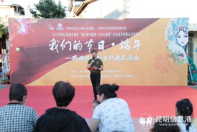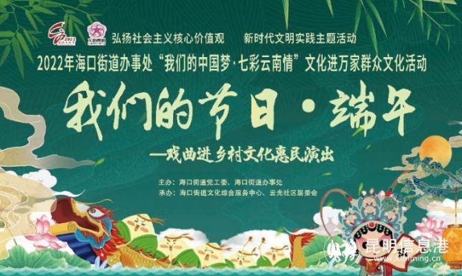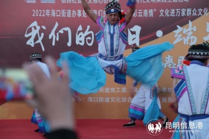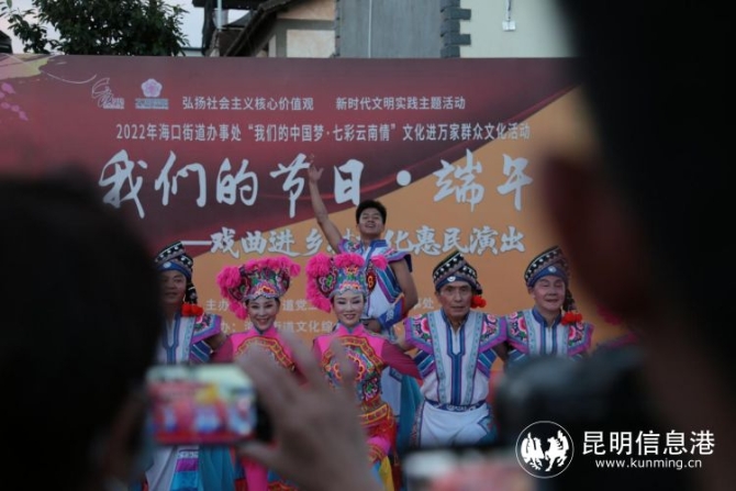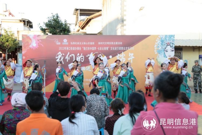 在传统佳节端午节来临之际,为进一步丰富人民群众精神生活,积极营造一个欢乐祥和喜庆的节日氛围。5月31日和6月2日两天,由海口街道党工委、海口街道办事处主办,海口街道文化综合服务中心承办的2022年海口街道办事处“我们的中国梦·七彩云南情”文化进万家群众文化活动分别走进云光社区、云龙社区、青鱼社区,为当地群众带来了三场丰富多彩的文化盛宴。