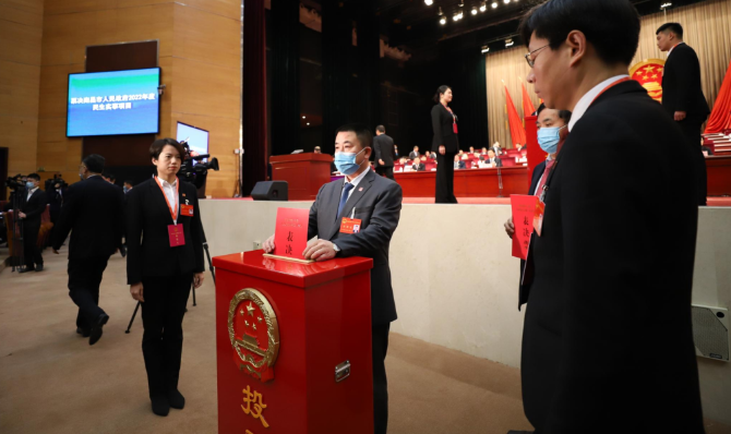 1月23日,南昌市十六届人大二次会议全体代表投票确定2022年度民生实事项目。 受访者供图