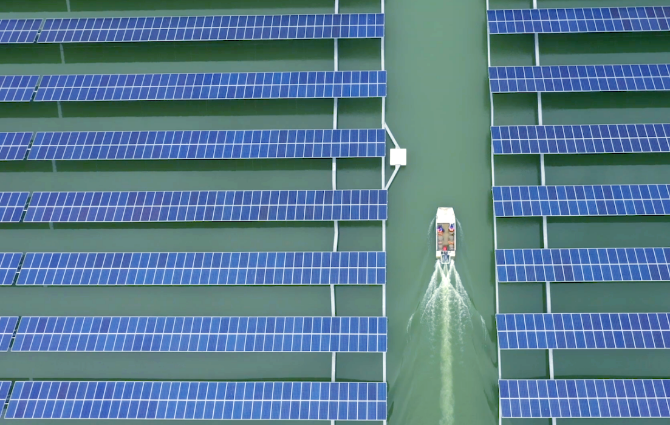 光伏板在渔舟唱晚中为碧水调色