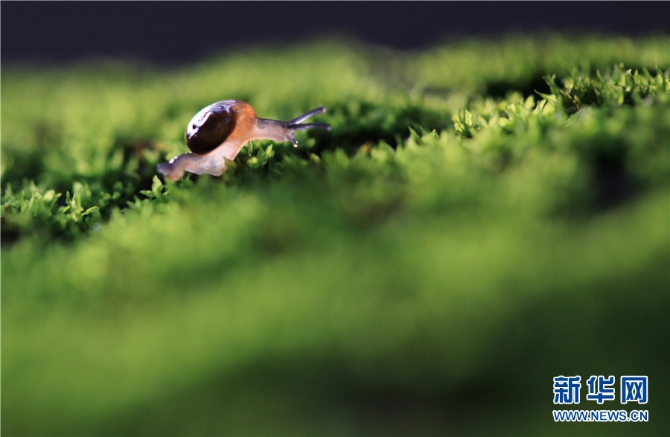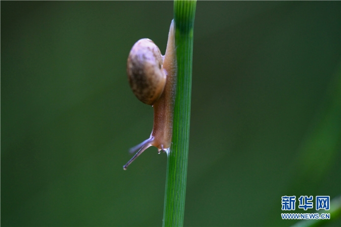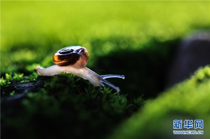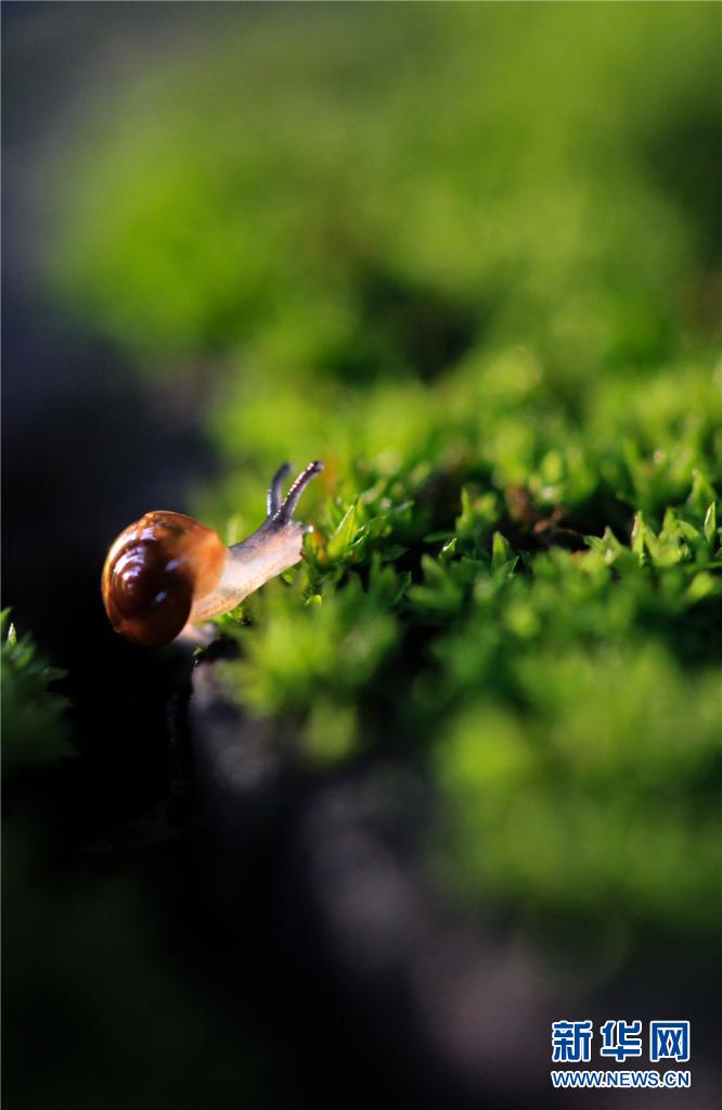 夏日黄昏,正是蜗牛活跃的时候。在云南省西双版纳傣族自治州野外、庭院角落,蜗牛出动徜徉在草丛、苔藓间,享受着夏日的时光。特别是在夕阳的映照下,蜗牛的身子也变得透明起来,甚是可爱。新华网发(李云生 摄)