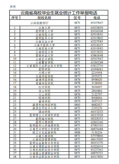 云南省教育厅公布高校毕业生就业统计工作举报电话