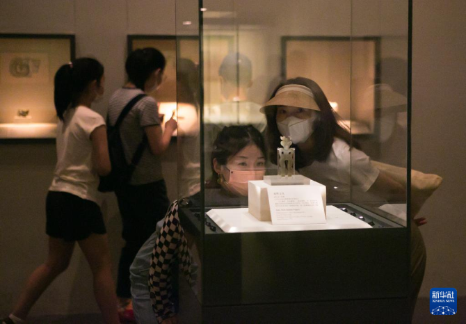 6月7日,观众在中国国家博物馆观看展品“双性玉人”。新华社记者 李京 摄