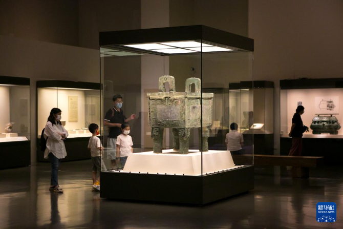 6月7日,观众在中国国家博物馆观看“后母戊”青铜方鼎。新华社记者 李京 摄